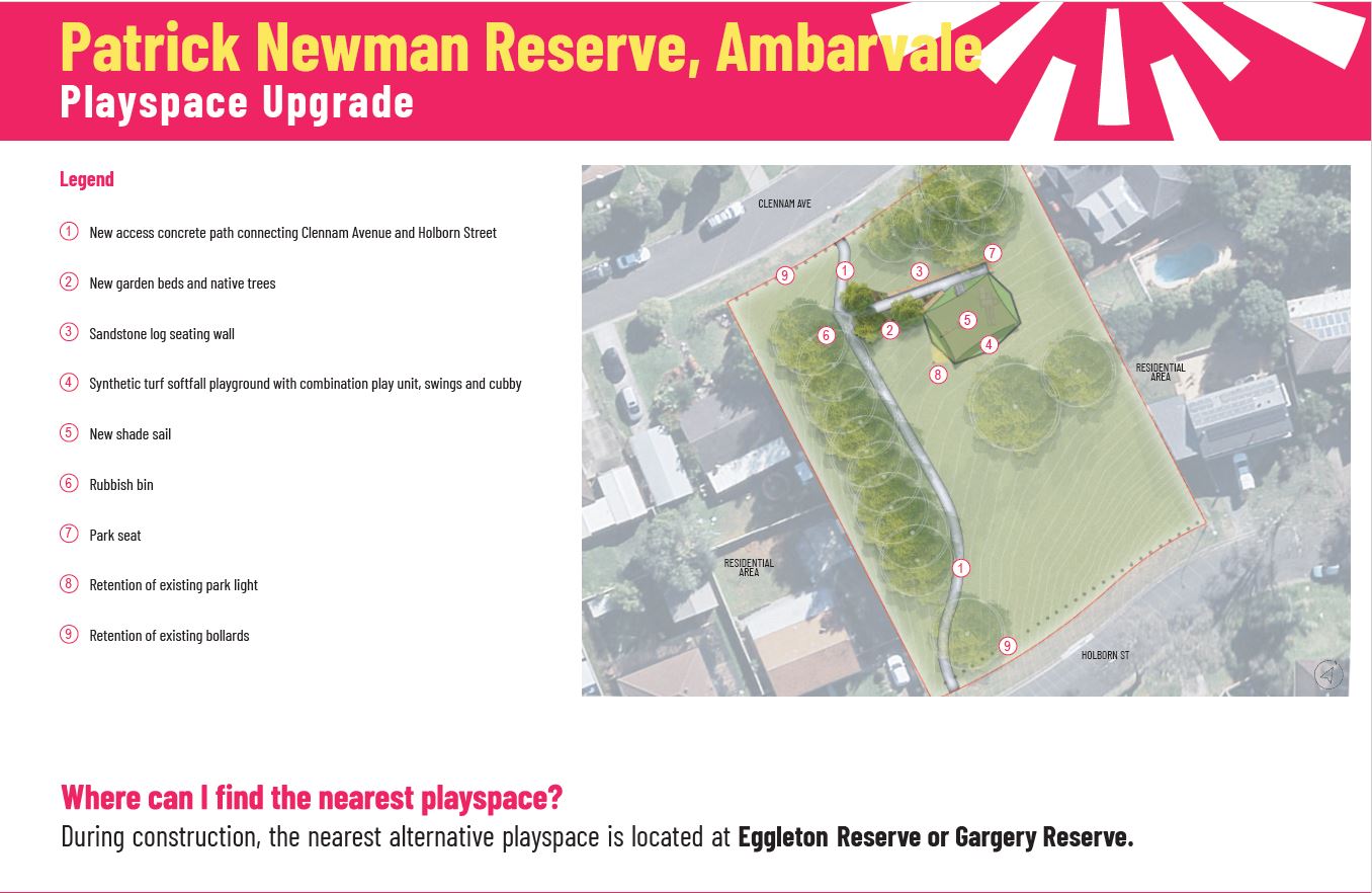 We're upgrading Patrick Newman Reserve with new play equipment and enhancements to the surrounding park.